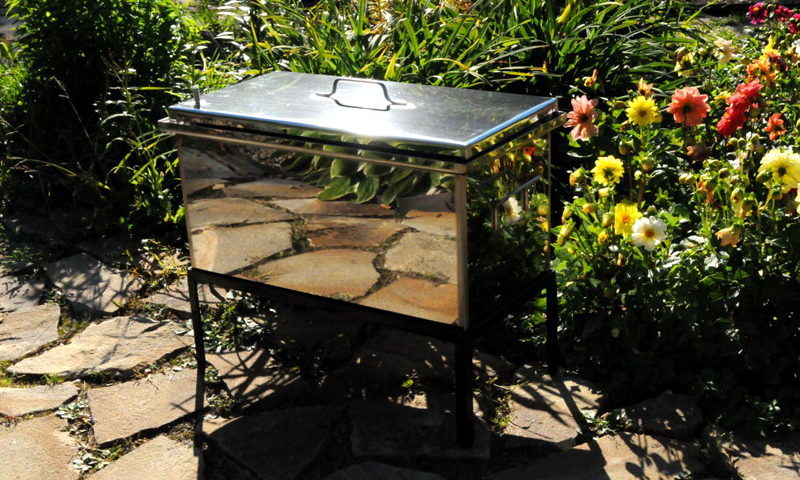 Из данного материала можно изготавливать конструкции самого разного размера и технологической сложности. Под нержавейкой подразумевается нержавеющая пищевая сталь, а не магнитная промышленная, как правило, марки 12Х18Н10Т. Главное преимущество данного материала — высокая коррозионная стойкость, так как устройства нередко применяются вблизи мест с повышенной влажностью (леса, водоема, дачи). В таких условиях коптильни из черных металлов быстро разрушаются и приходят в негодность, что влечет за собой и потерю вкуса приготавливаемой еды. Коптильни из нержавейки лишены этих недостатков, поэтому срок службы таких устройств в десятки раз больше.